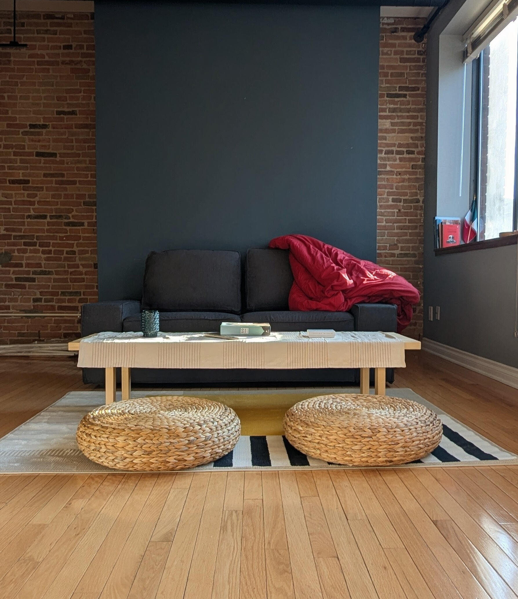 The living space is open, grounded, and intentionally simple. It's designed to support focused work and creative thinking: a place to read deeply, draft carefully, or reset.
